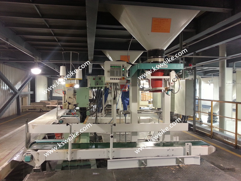 該秤專為飼料,化肥,大豆,玉米,化工原料等流動性較差,易結塊類物料的定量包裝而設計,采用皮帶式給料,物料通過氣動蝶閥進入緩沖料倉,物料通過皮帶傳輸送到袋內。通過控制皮帶的轉速控制給料量,料袋一旦到稱裝滿,其夾袋器通過控制系統打開,料袋落下后通過輸送帶向縫包工位輸送,由人工輔助至封包縫口(封口方式:1,直接封包縫口 2,袋口加封口紙條縫口 3,折邊封包縫口),根據客戶生產需要。